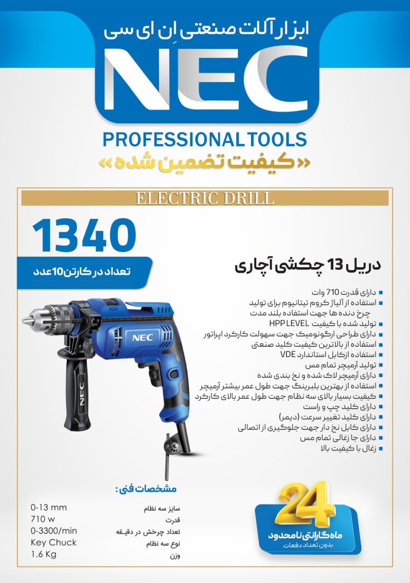 دریل 13 چکشی ان ای سی مدل 1340 NEC
