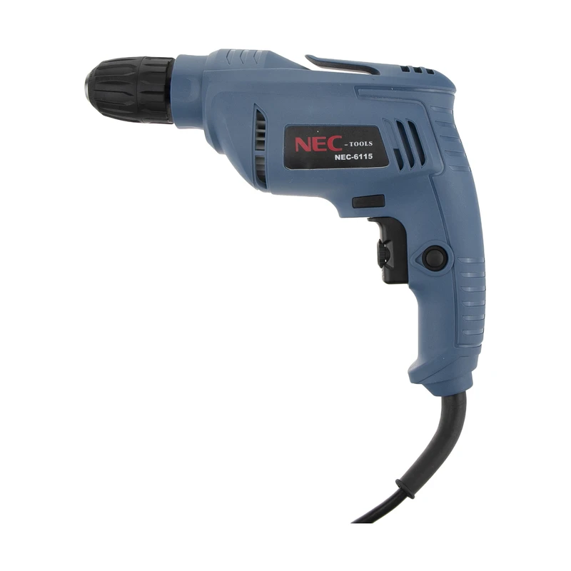 دریل برقی 10 میلی متر ان ای سی مدل 6115 با سه نظام اتوماتیک چپ و راست کیفیت بالا جهت طول عمر بالای کارکرد به بازار ابزارآلات ارائه می شود . برای تولید چرخ دنده ها جهت استفاده بلند مدت از آلیاژ کروم تیتانیوم در این دریل برقی 10 میلی متر ان ای سی استفاده شده است . این دریل برقی دیمر دار است و دارای سرعت در حالت آزاد بین 3300 – 0 دور بر دقیقه می باشد .